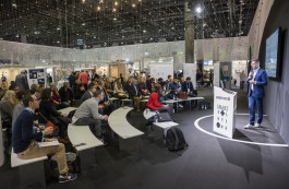 Funktion Innovationsareal auf der Büromesse Paperworld mit Veranstaltungsbereich, Ausstellung, Café und Herstellerbereichen